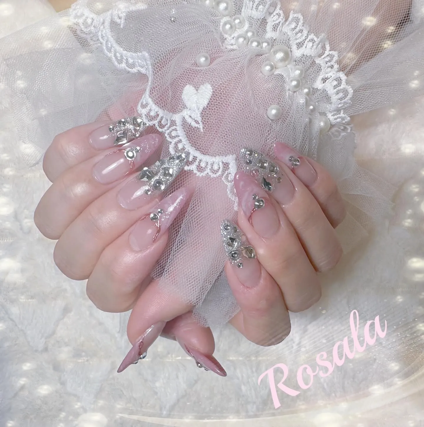 ピンクマーブルにキラキラの先端埋めつくしはめちゃくちゃ可愛いですね(,,> <,,)